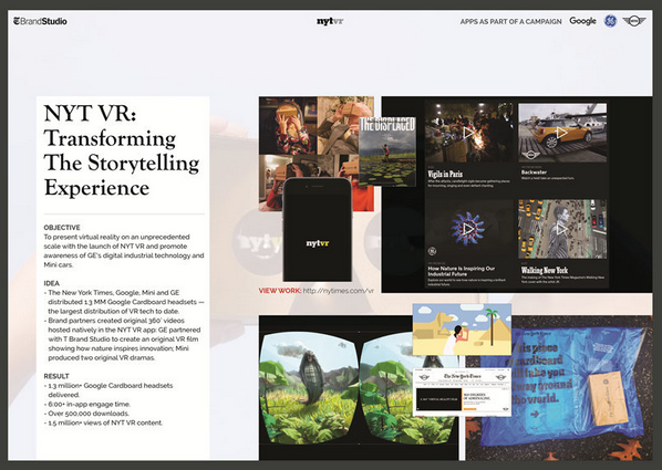《紐約時報》旗下的原生廣告部門 T Brand Studio 就是這樣一個典型的例證。它成立于 2014 年,其業務范圍包括為品牌主撰寫新聞格式的贊助文章、制作信息圖和視頻。在短短三年的時間里,T Brand Studio 已經成長為《紐約時報》收入增長最快的部門。在今年的戛納國際創意節上,T Brand Studio 還憑借著 VR 新聞應用和 VR 短片《流離失所者》拿下了移動類和娛樂類兩項全場大獎。