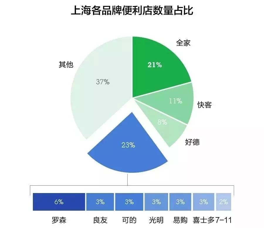 但上海便利店比北京多的這種感覺也并非空穴來風,根據DT財經采集的數據對比分析,上海便利店總數中,連鎖品牌便利店比例基本達到50%,而在北京、以及便利店發展指數排名高于上海的深圳,這一比例基本都只有30%左右。