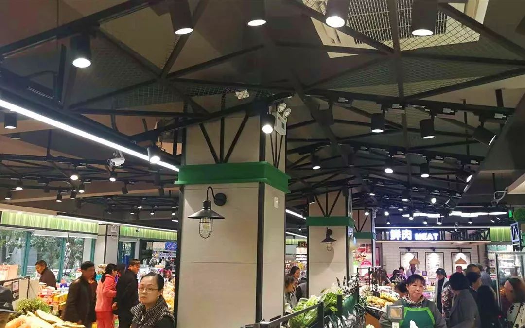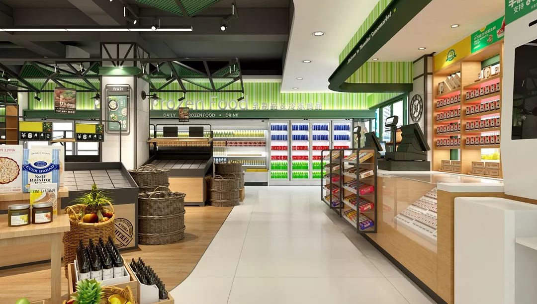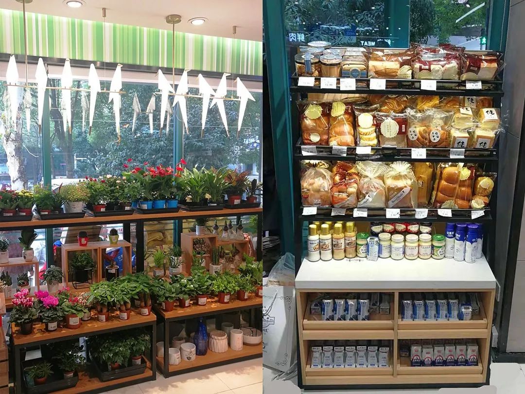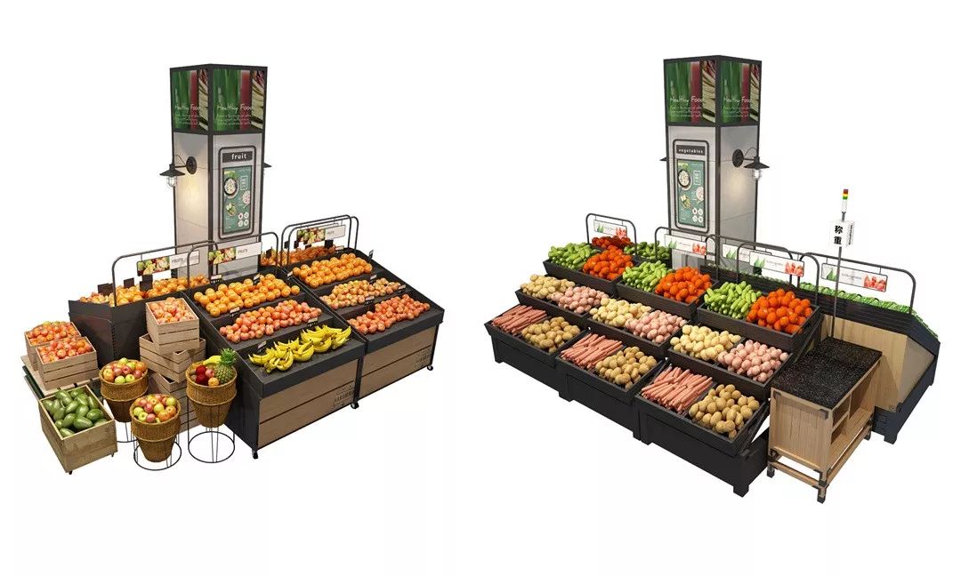 此次升級更豐富了貨架設計和陳列方式,給客戶以靈動多變的購物體驗,生鮮區域使用了多層蔬果架,以小小面積承載更多商品,并能在視覺上營造出豐富多彩的效果。