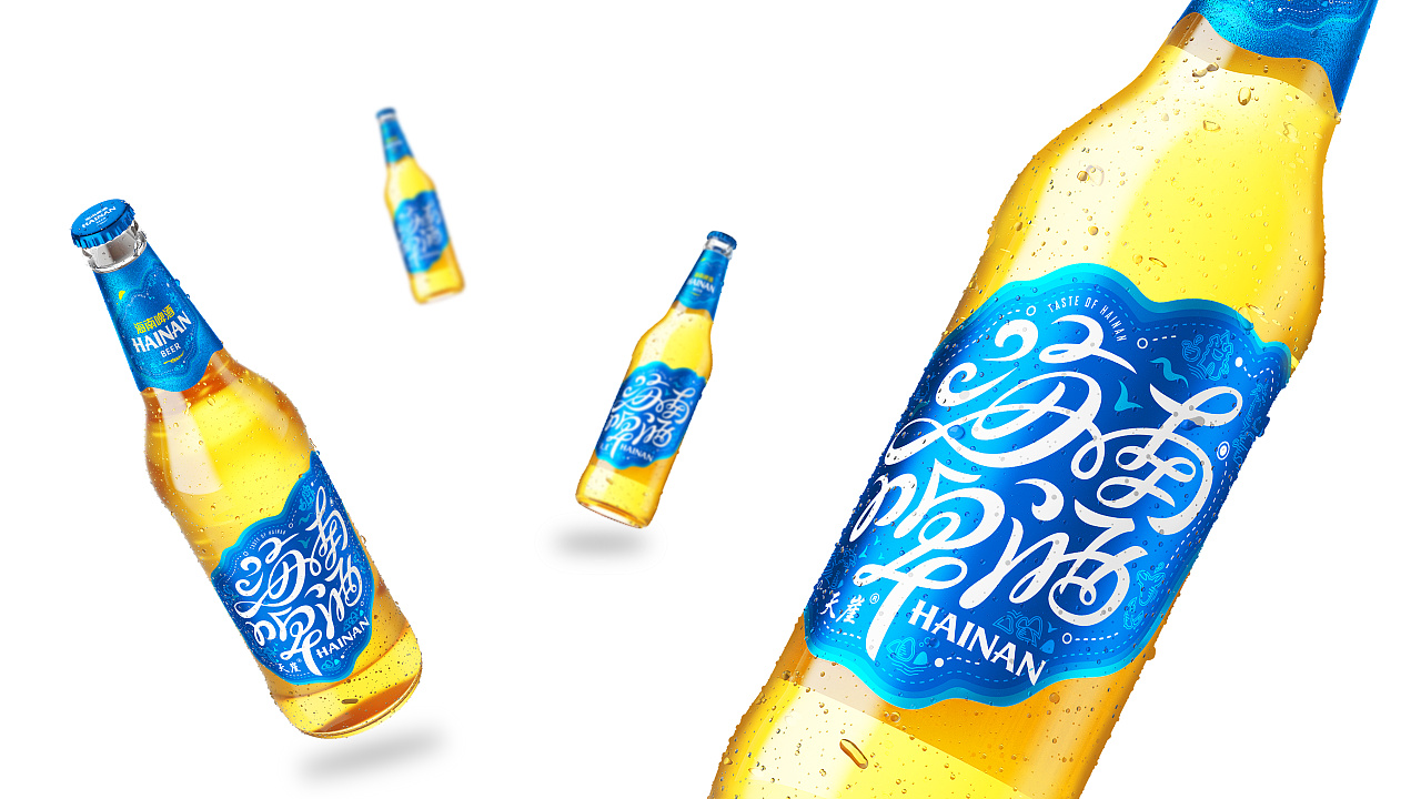 海南啤酒的包裝設(shè)計(jì)創(chuàng)意靈感來(lái)自于“浪”,結(jié)合海南本土元素再設(shè)計(jì),提取海浪、海鷗的形狀,通過(guò)文字變形處理,將元素以圖像化表現(xiàn),賦予海南啤酒的新鮮活力。圓潤(rùn)、律動(dòng)的圖形文字,體現(xiàn)海南的舒適自由度,將悠然愜意的感覺(jué)融入設(shè)計(jì)之中。主圖形放大化,突破常規(guī)設(shè)計(jì)局限,形成強(qiáng)烈的視覺(jué)沖擊力。