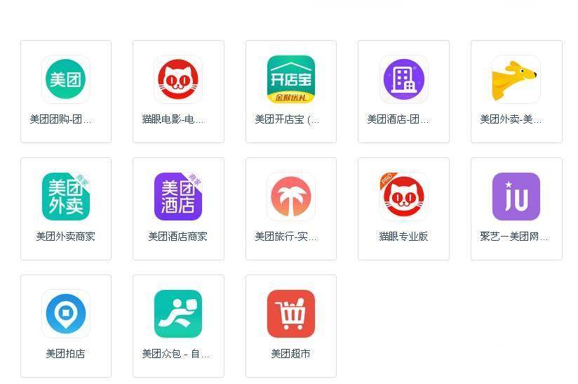 像這種相似的例子還有很多,例如從美團的產(chǎn)品線上來看,一直致力于提供大家吃喝玩樂一站式服務(wù),但是旗下子品牌視覺系統(tǒng)較為凌亂,不成系統(tǒng)。
