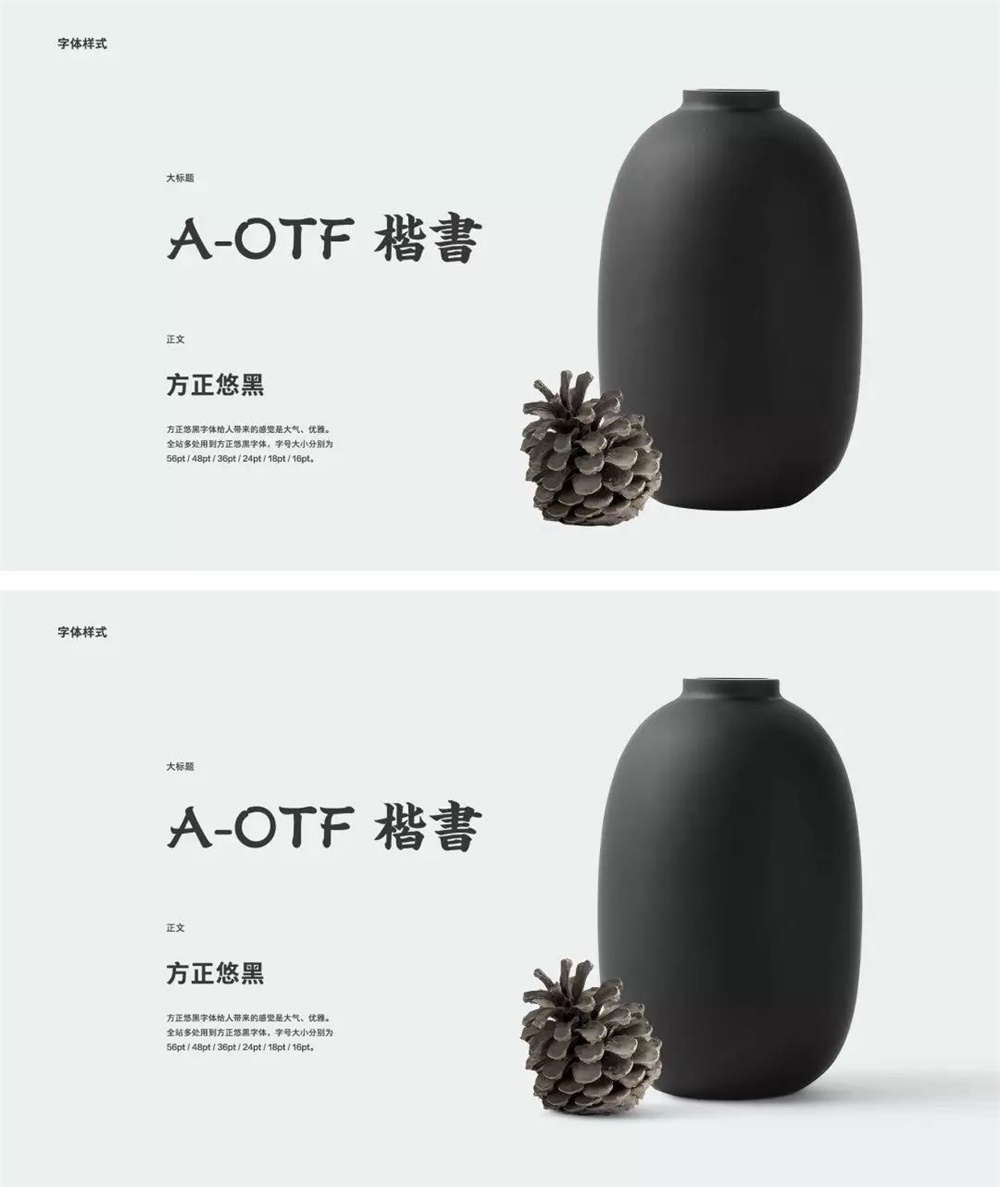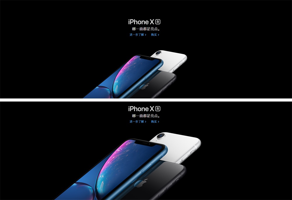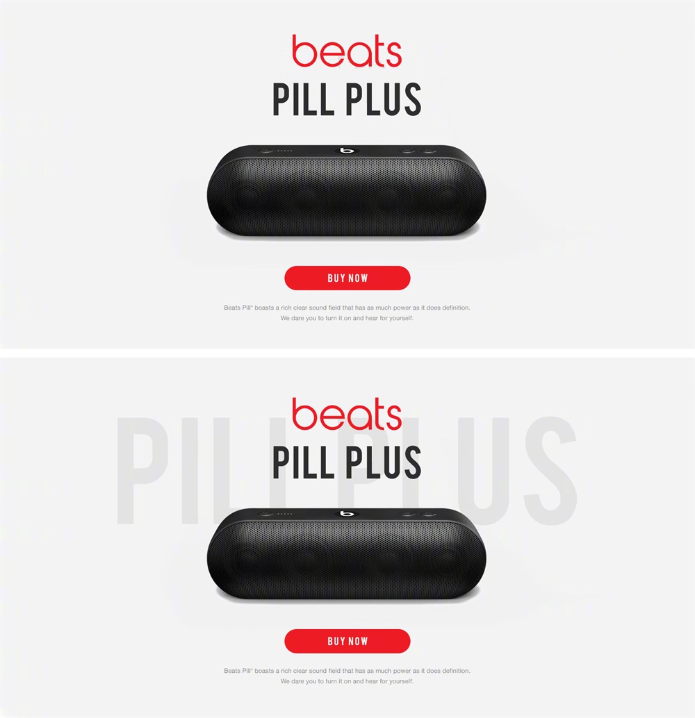 同樣是產品+文案,上下的差距一目了然,之所以會呈現出這樣的視覺感受在于對留白的運用,也就是視覺比例關系,當整體比例關系運用得當時,哪怕只是產品和文案,不添加任何輔助元素和效果,也不會給我們「空」的視覺感受;各個元素的視覺比例不恰當也會是造成畫面「空」的原因之一。