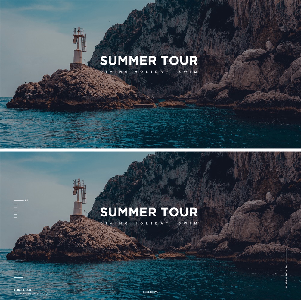 能起到很好的填充留白的作用,從而可以解決畫面「空」的現象,且能很大程度上保留畫面本身的品牌調性、簡潔風格。