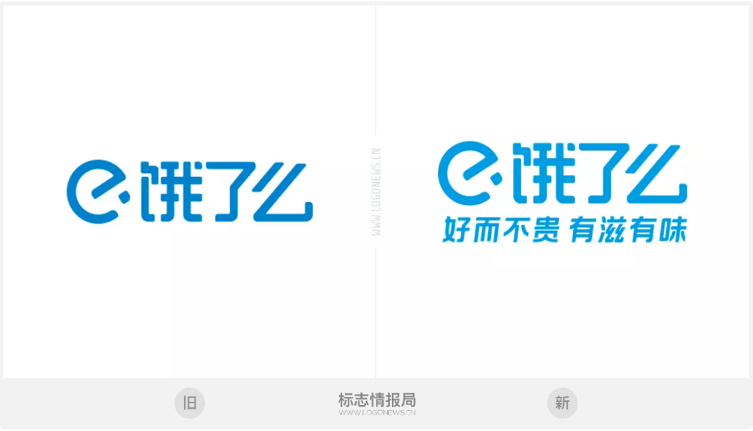 直到2016年7月份,LOGO的邊框才被剔除,重新設計了字體,并將「e」圖標稍微向上傾斜變成了57度斜角,諧音「我吃」。自此后,該標一直用到今天。