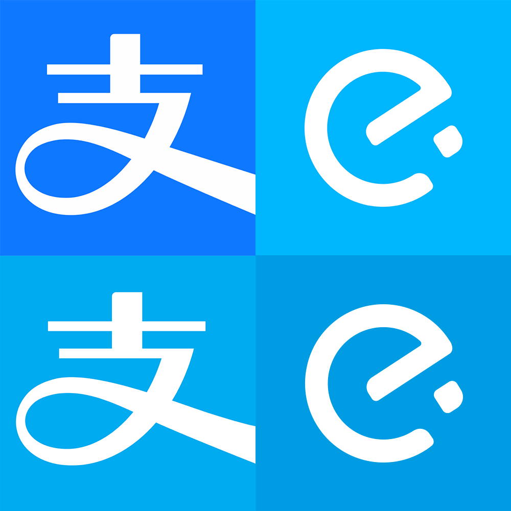 左上(支付寶新藍色)、左下(支付寶舊藍色)、右上(餓了么新藍色)、右下(餓了么舊藍色)