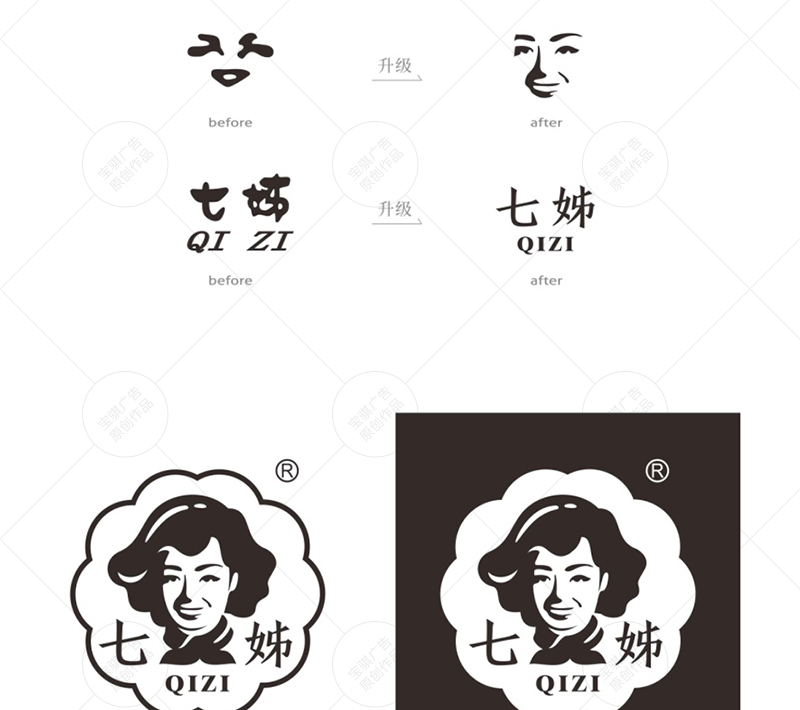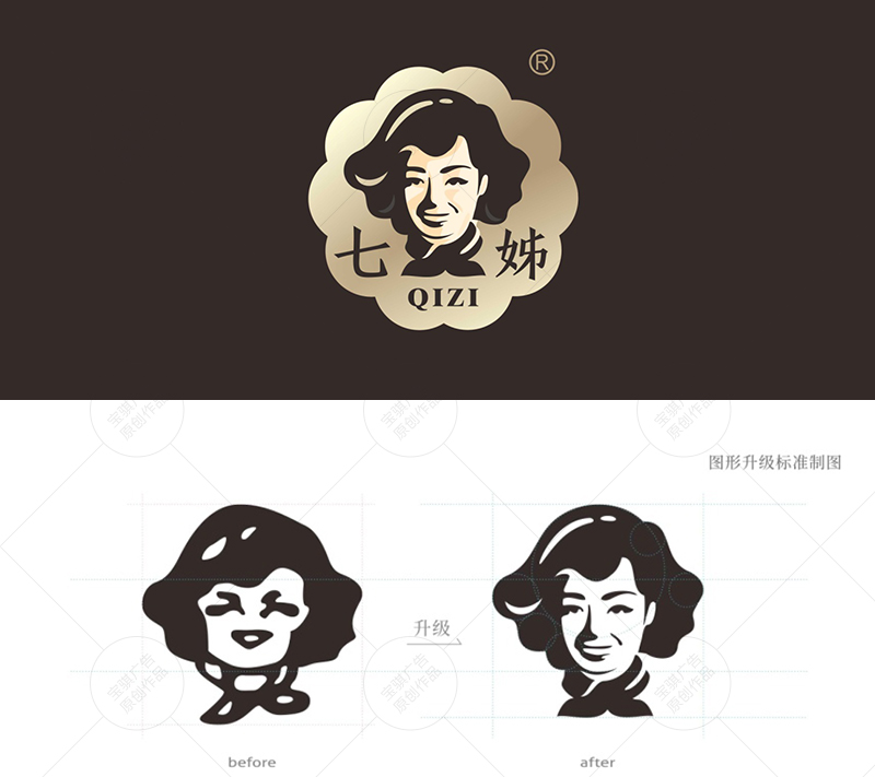 七姊是武漢食品類龍頭企業,旗下擁有上百種產品,擁有良好的品牌知名度。當前品牌標志及產品包裝已使用上十年,與當下消費者的視覺偏好多有脫節,品牌升級工作提上日程。